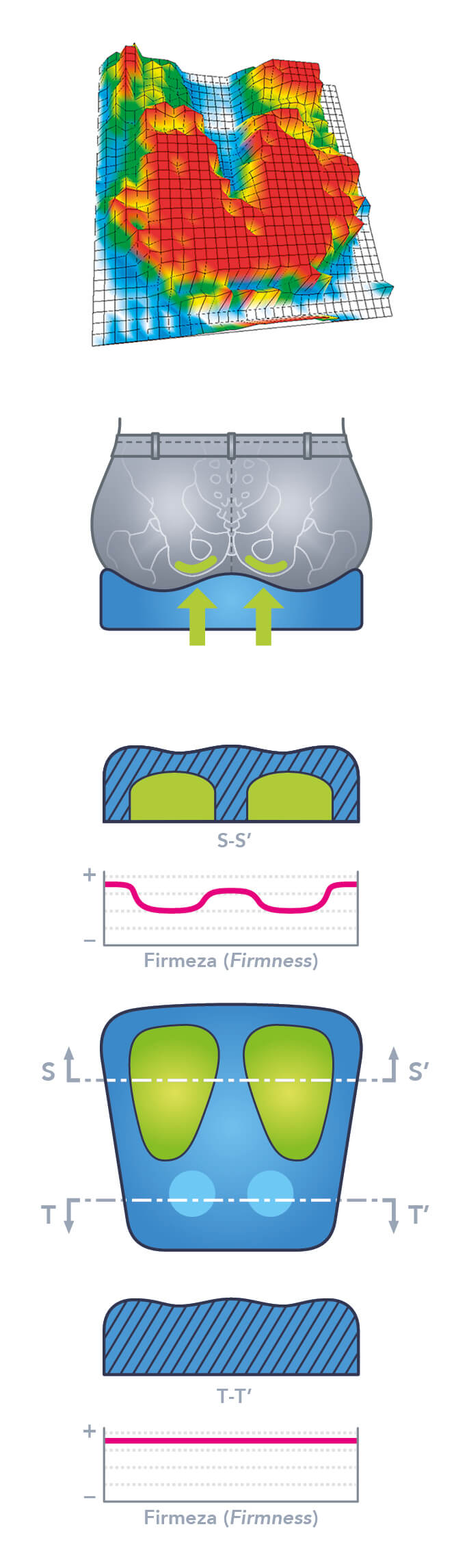 It is necessary to provide the seat with the precise shape for a better decompression of the gluteus maximus and fatty tissue, which along with our skin are interposed between the T.I. and the seat.